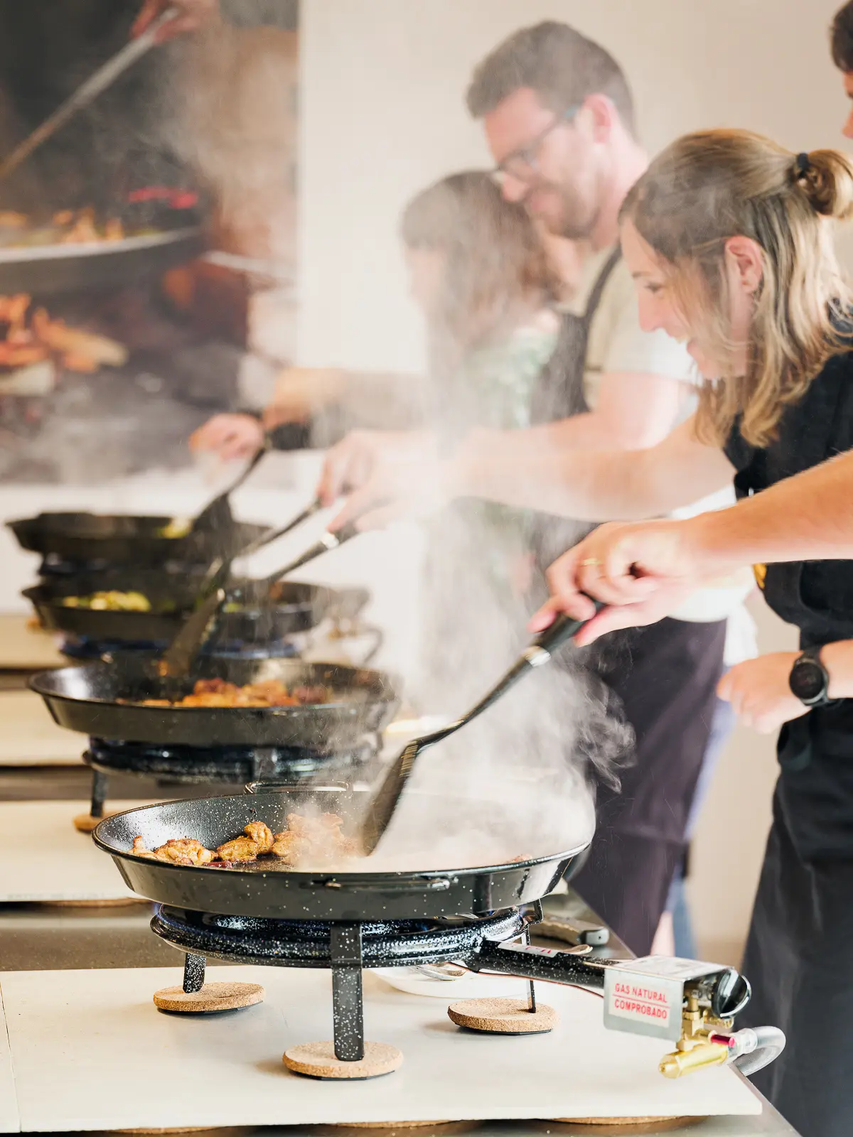 Een paellaworkshop is erg arbeidsintensief, zowel vóór, tijdens als ná de workshop. Verder is het enkel mogelijk voor kleinere groepen en onderworpen aan 21% BTW (die u als bedrijf recupereert). Tot slot werken we in een volledig op maat ingerichte locatie, die de deelnemers toelaat zelf een paella klaar te maken. Als alternatief voor een lager budget kunnen we ook een paelladiner of -lunch aanbieden, waarbij we als hoofdgerecht live een grote pan paella klaarmaken en geïnteresseerden de bereiding mee kunnen volgen rond de pan. Dit is ook voor grotere groepen mogelijk.