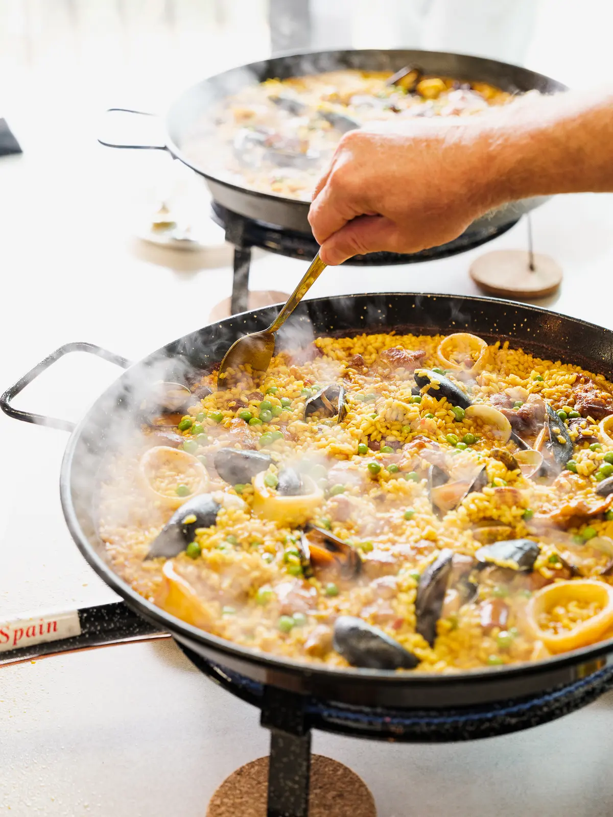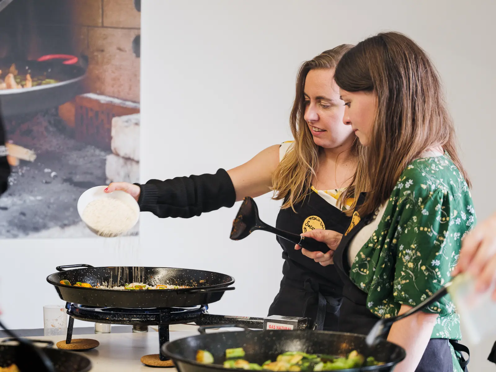 De gasten gaan in deze formule niet zelf aan de slag maar genieten van een aperitief met hapjes, een driegangenmenu met een live klaargemaakte paella als hoofdgerecht, dessert en koffie. Wie interesse heeft kan de bereiding van de paella van nabij volgen.
