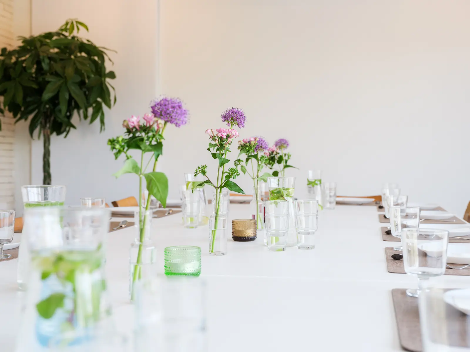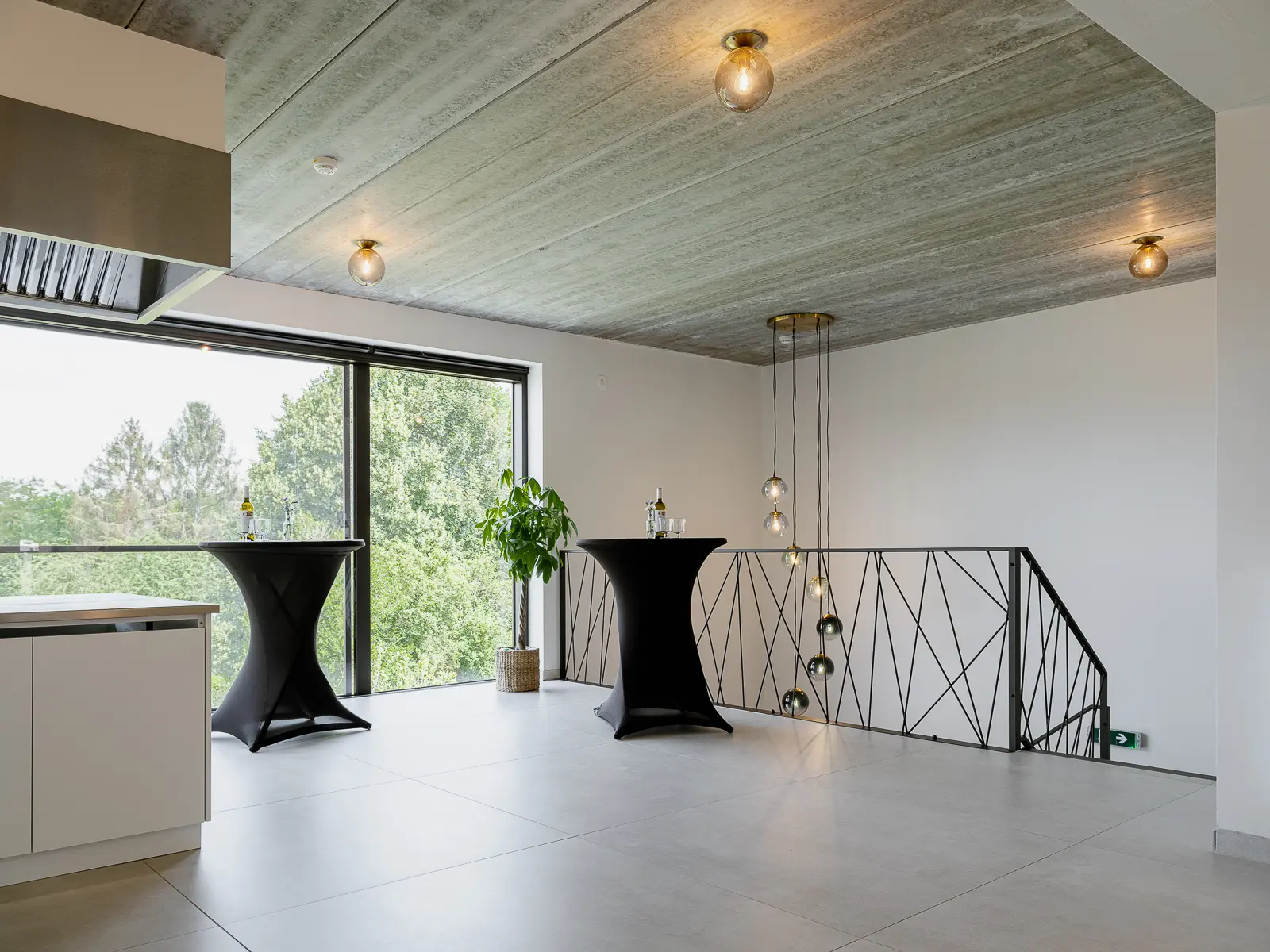 - Tot 40 personen voor een receptie (tafels in eetruimte, sta-tafels in workshopruimte)
